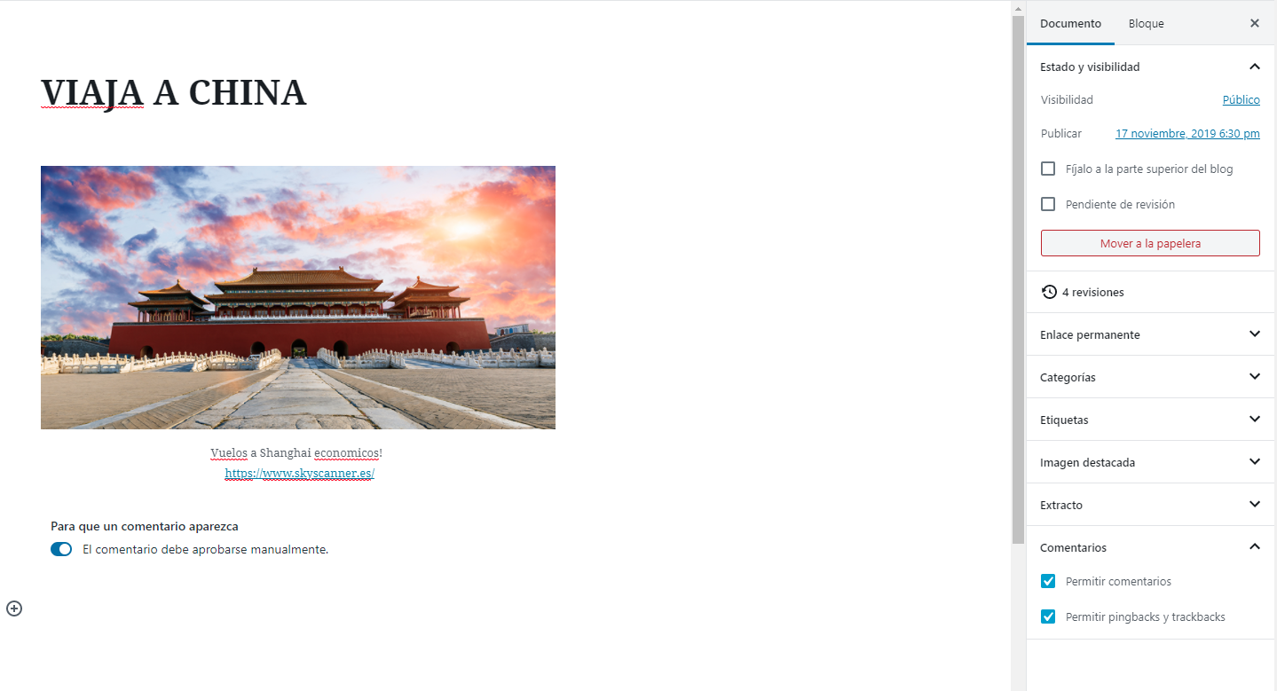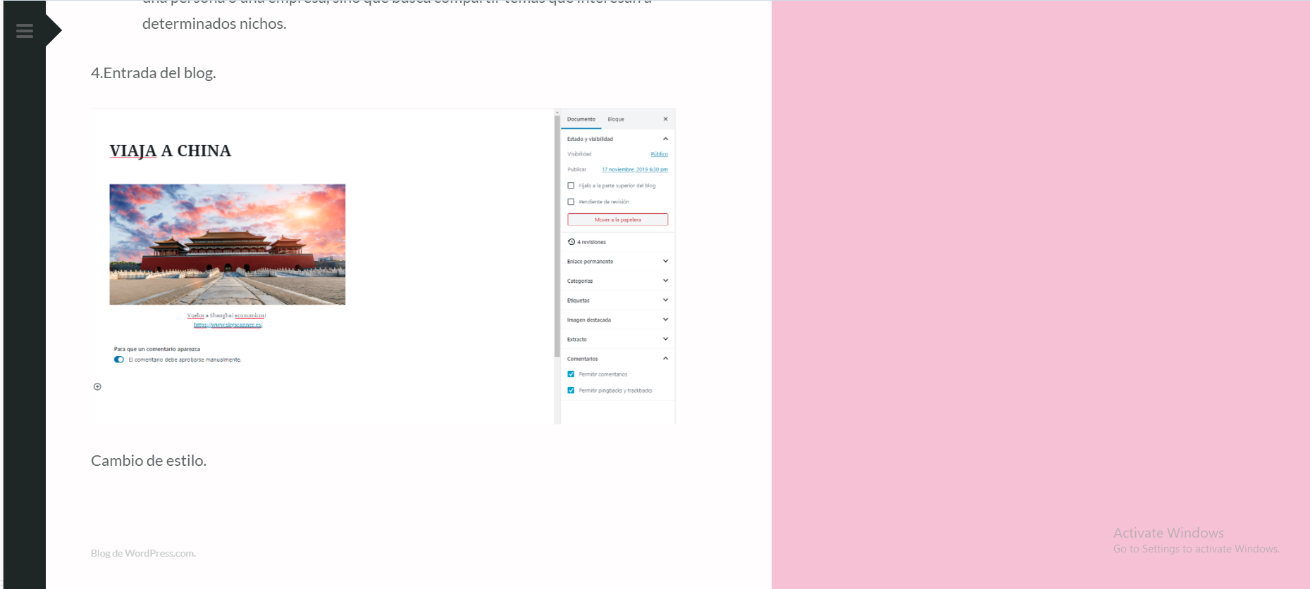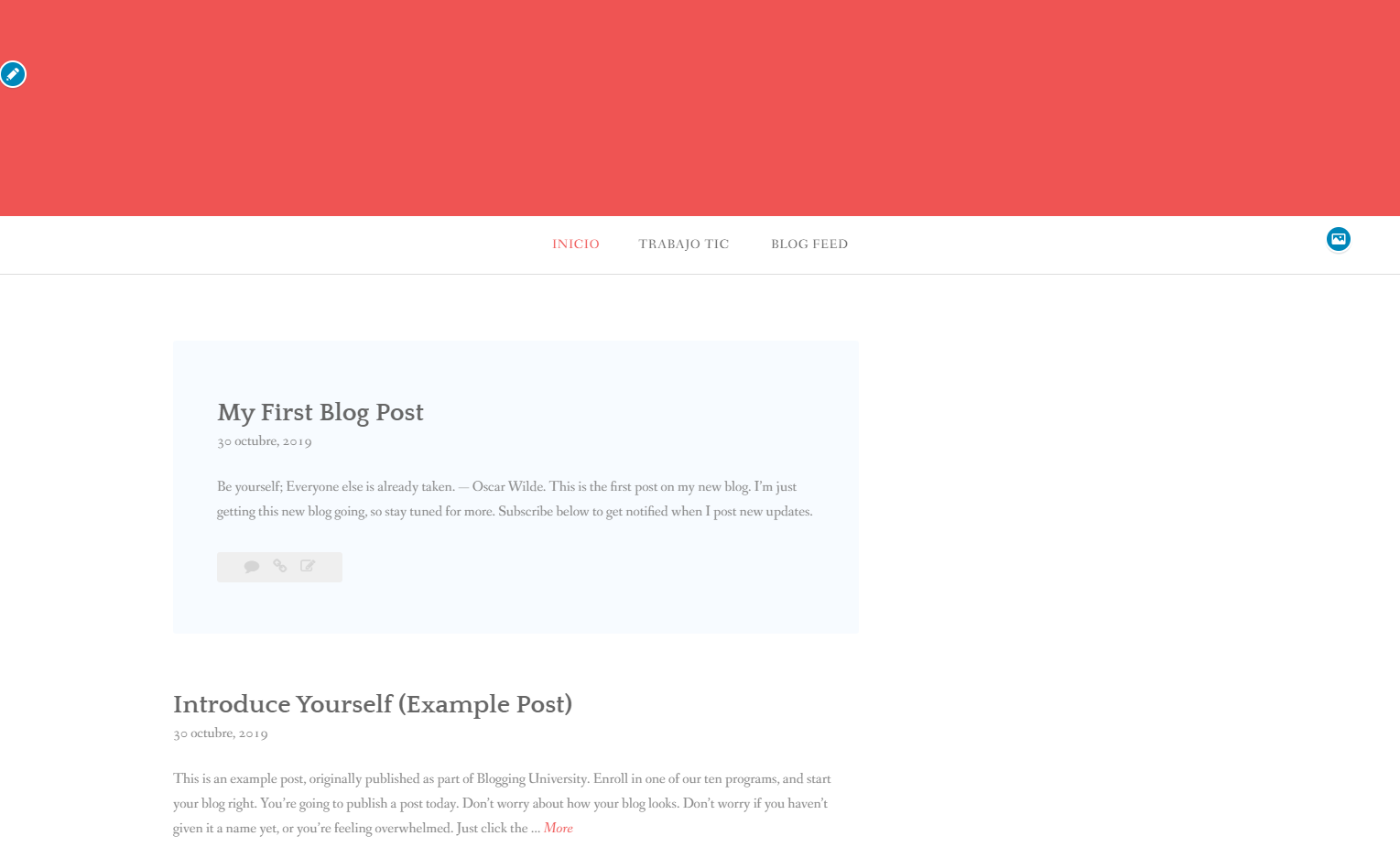 Edición del blog: Añadido: Imagen de cabecera, logo, Titulos y encabezado, Primera entrada, color de fuente.